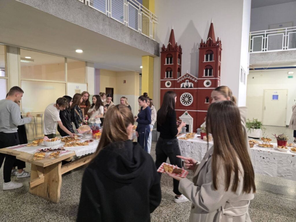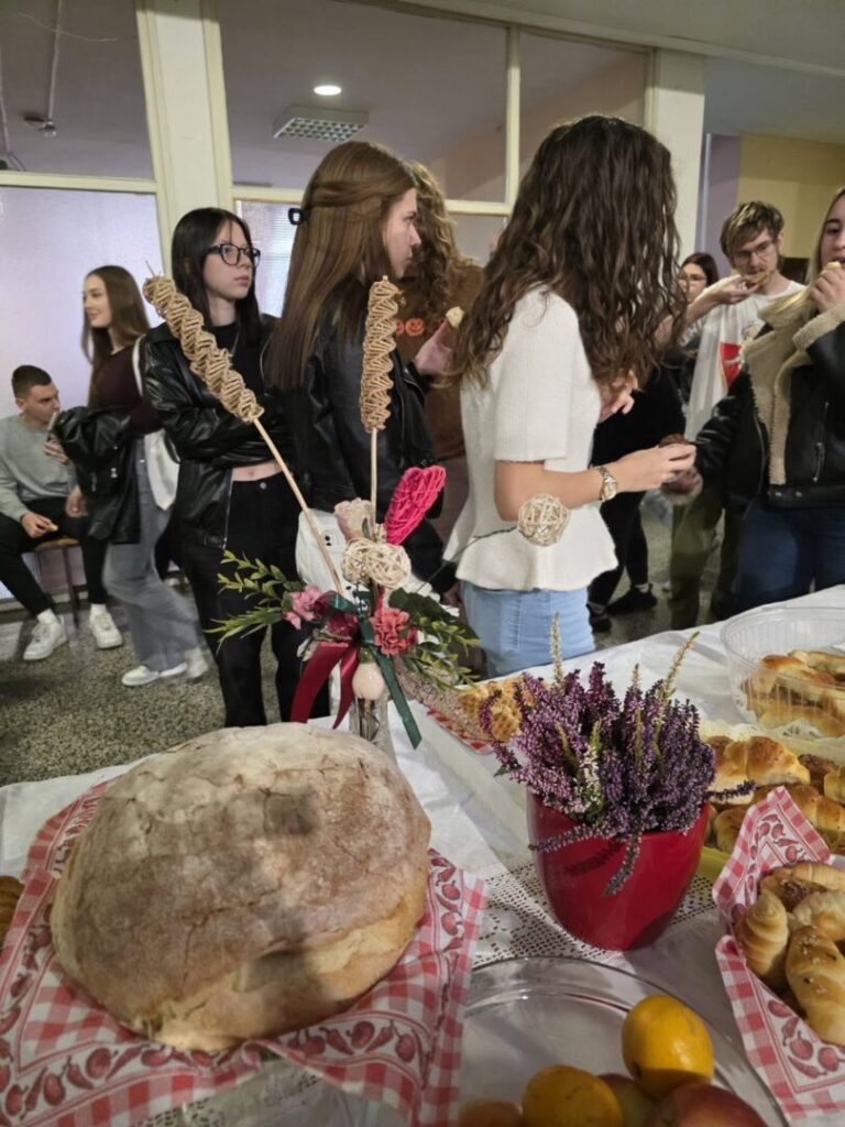 Prigodni pano, izložbu prigodnih predmeta te izložbu pekarskih proizvoda pripremile su učenice 4. E1 i 4. WD razreda, uz mentorstvo nastavnica Željke Gal, Mirele Fekete, Nataše Šantić, Katice Mišković i Bernardice Šušak. Tijekom velikog odmora svi su mogli pogledati prigodni postav te se počastiti pekarskim proizvodima. Autorica teksta i fotografija: Nataša Šantić